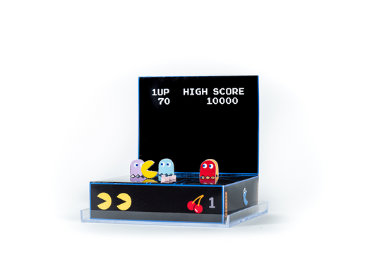 The Pac-Man diorama captures the timeless magic of a game that shaped generations. The winding maze, the ever-hungry Pac-Man and the mischievous ghosts freeze a moment of arcade history inside a small cube. Looking at it is like stepping back into neon-lit halls, hearing the unforgettable sound of dots being eaten and feeling the pulse of the chase.