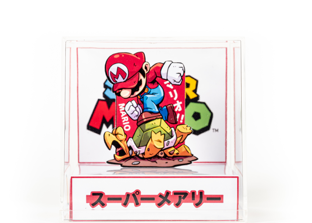 The Super Mario Mini Cube – Mario holds a moment of victory frozen in time. Inside the clear cube, Mario’s pose radiates strength and determination as if he could spring back to life at any second. His world may be small, but it feels alive with energy and purpose.